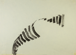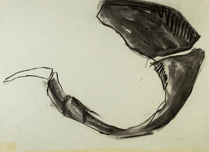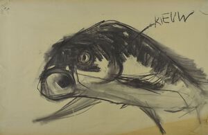 2018Na talloze vormstudies van vissen gaf ik met houtskool de essentie weer. Met enkele lijnen, heel direct. Deze tekening is zwevend ingekaderd in een blokkader van 70 op 50 cm.